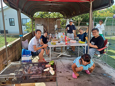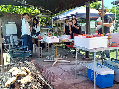 BBQ懇親会実施しました。かつての同僚が遊びにきてくれました。お土産は新鮮採れたて生牡蠣!!