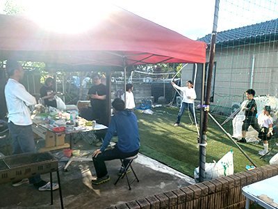 BBQ懇親会実施しました。すこぶる快晴の中で、肉&野菜&きのこ&焼そば、長縄大会、充実でした。